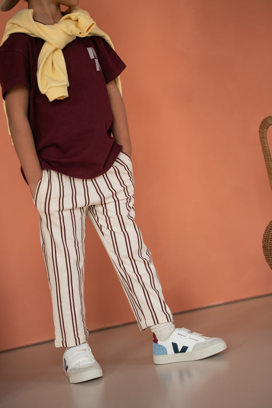 86/92 98/104 110/116 122/128AanbiedingNavy Natural – Mex Pants Burgundy Stripe