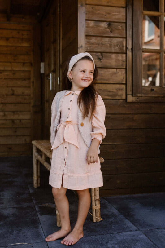 6-12 maanden 12-18 maanden 18-24 maanden 2-3 jaar 3-4 jaarMousseline organic Peter Pan Kraag Jurk, zalm