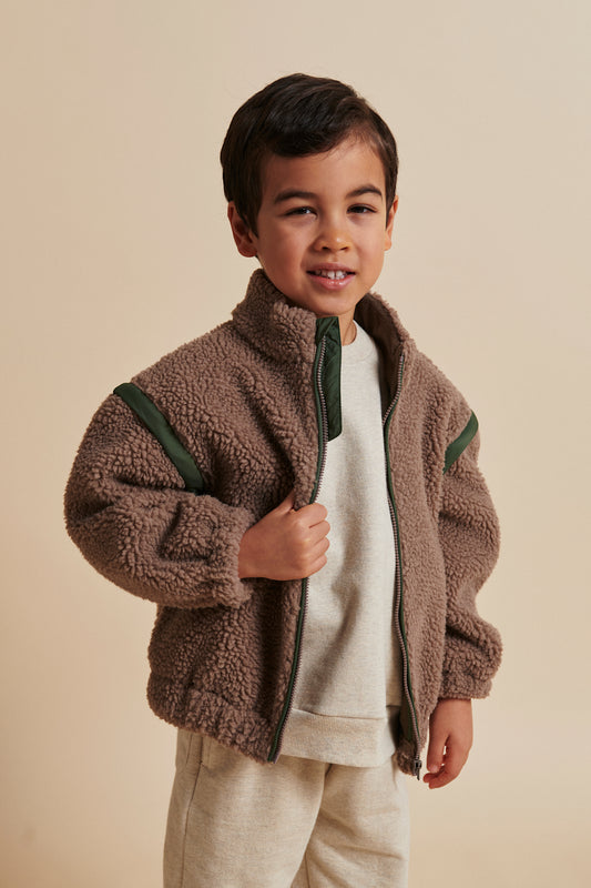 92 98 104 110 116 122 128 134 / 140Copenhagen Colors - Teddy Jas met Afritsbare Mouwen (Natural/Green Combi)