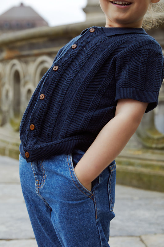 92 98 104 110 116 122 128Copenhagen Colors - Knitted Pattern Shirt Navy Blue