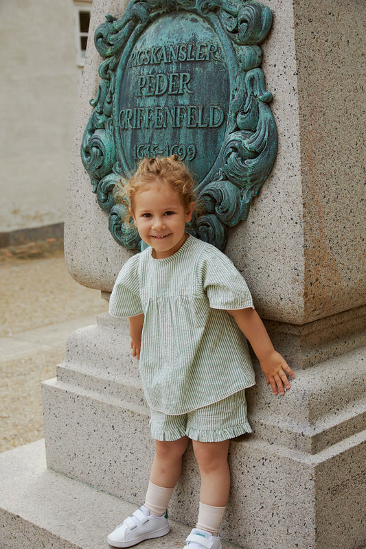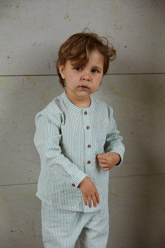 92 98 104 110 116 122 128Copenhagen Colors - Seersucker Shirt Green Cream Stripe lange mouw