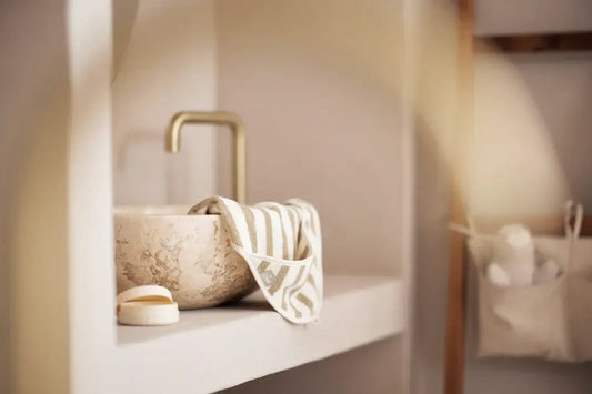 Badcape 75x75cm Stripe Terry Olive Green GOTS