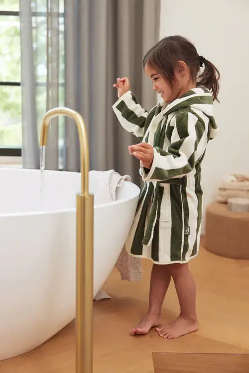 Badjas 3-4 jaar Stripe Terry -Olive Green - GOTS