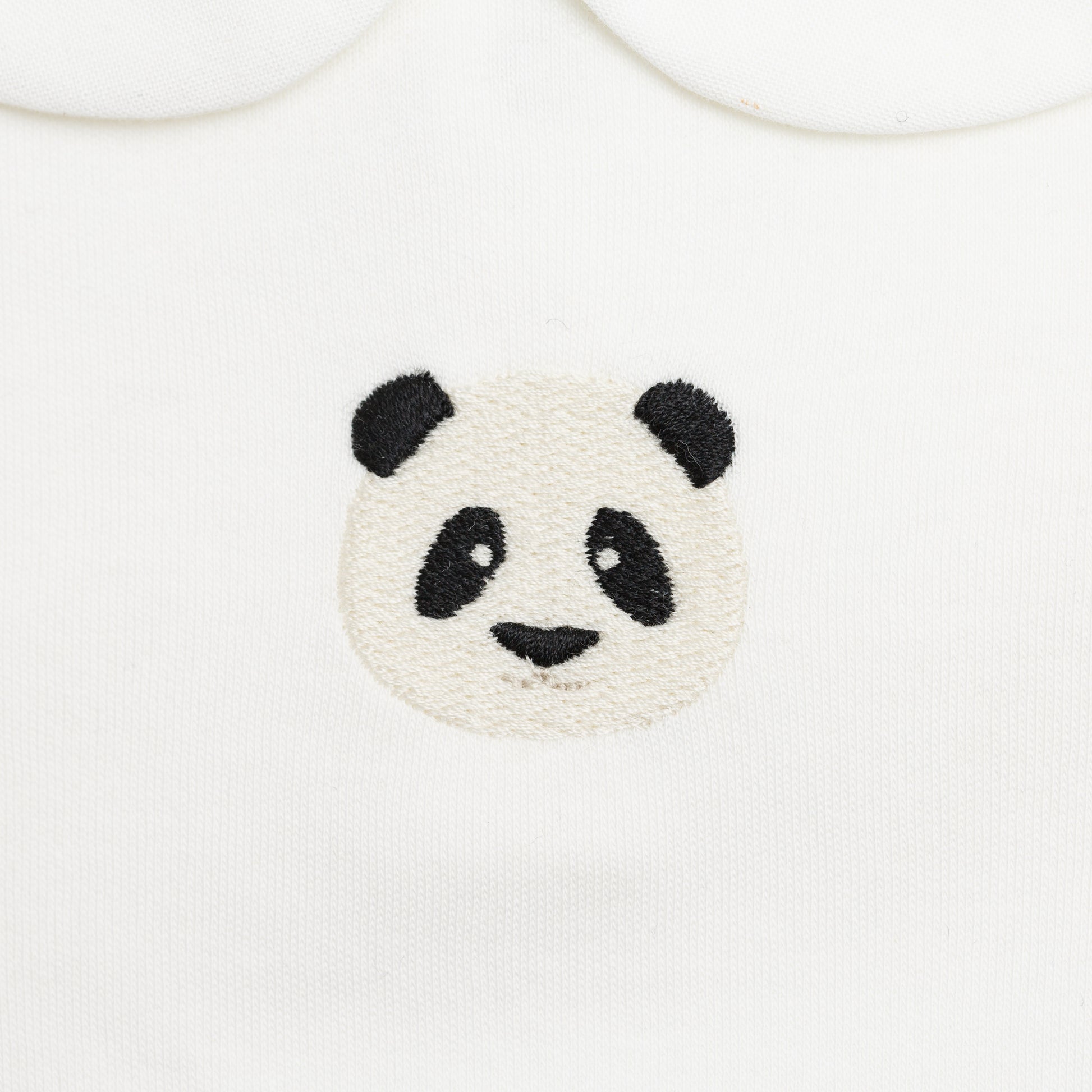 Een bijzonder detail van deze bodysuit is het fijne geborduurde panda-motief op de voorkant. Dit geeft het kledingstuk een speelse en vriendelijke uitstraling, zonder dat het te druk oogt. De panda past perfect bij de zachte off white kleur en zorgt voor een rustige, maar toch vrolijke look.