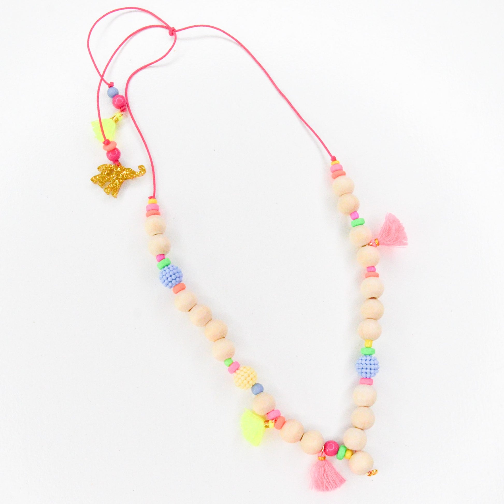 De combinatie van kleur en eenvoud maakt deze ketting aantrekkelijk voor kinderen én praktisch voor ouders.
