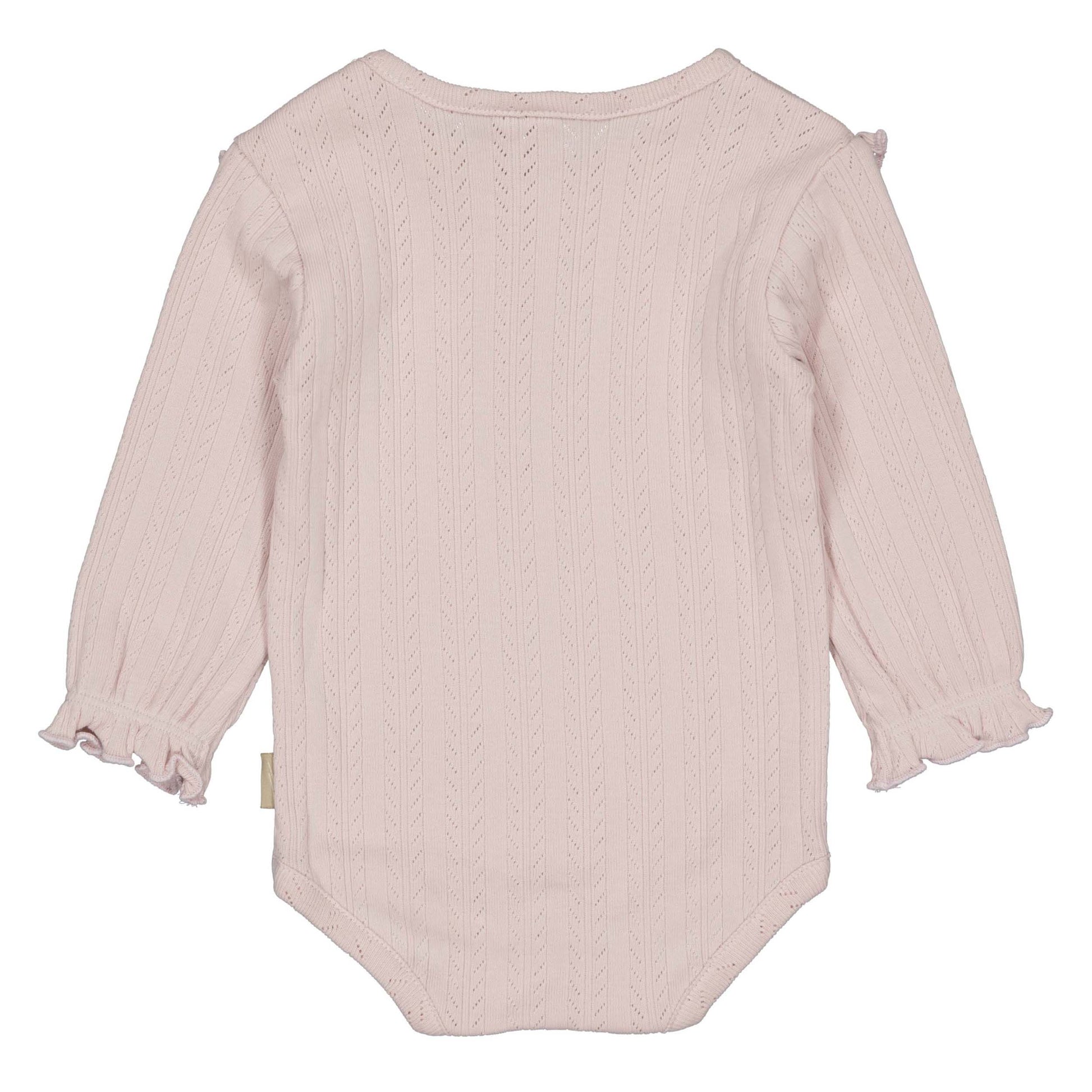De fijne pointelle ribstructuur geeft de romper een subtiele textuur, terwijl de schattige ruches op de schouders en mouwuiteinden zorgen voor een elegante en lieve look. Dankzij de knoopjes op de schouder en de handige drukknoopsluiting aan de onderzijde is aan- en uitkleden eenvoudig en snel, ideaal tijdens het verschonen.