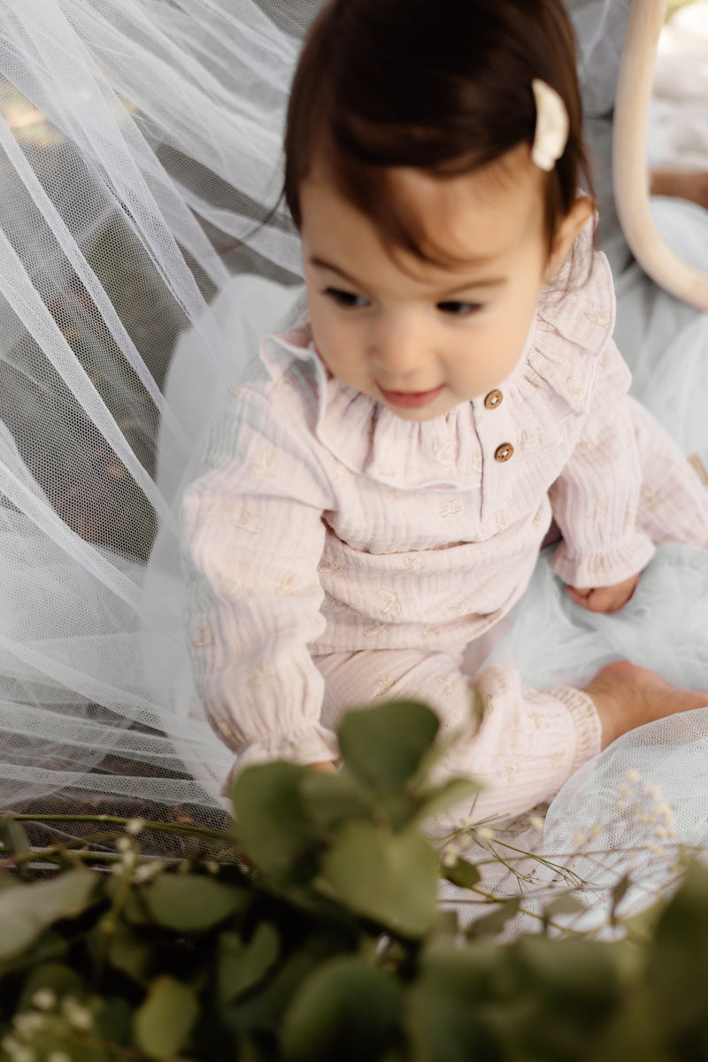 De pasvorm is comfortabel en praktisch, met voldoende bewegingsvrijheid voor kleine armpjes. De subtiele afwerking en zachte tinten maken dit shirt gemakkelijk te combineren met andere newborn items zoals een bijpassend broekje of legging. Perfect voor dagelijks gebruik, maar ook heel geschikt als kraamcadeau of eerste outfit.