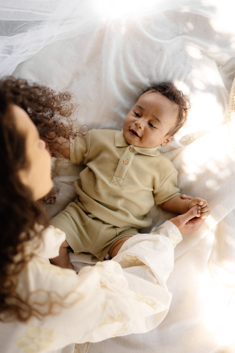 Ontdek dit stijlvolle newborn shirt van Levv, een verfijnd en comfortabel kledingstuk voor baby’s dat perfect past binnen een tijdloze baby garderobe. Dit shirt in de kleur Olive is speciaal ontworpen voor jongens en combineert een klassieke uitstraling met optimaal draagcomfort. Het subtiele polo-model met kraag en knoopsluiting geeft het shirt een nette, maar toch zachte en speelse look die geschikt is voor zowel dagelijkse momenten als bijzondere gelegenheden.