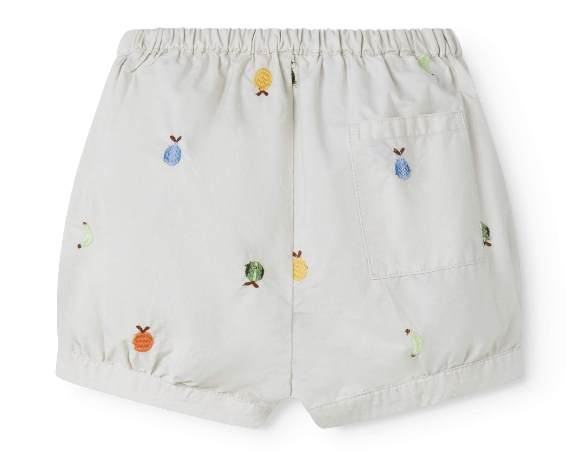 De licht afgeronde pijpjes en subtiele plooitjes geven de short een zachte, speelse vorm. Aan de achterkant bevindt zich een opgestikte zak, wat een charmant detail toevoegt aan het ontwerp.