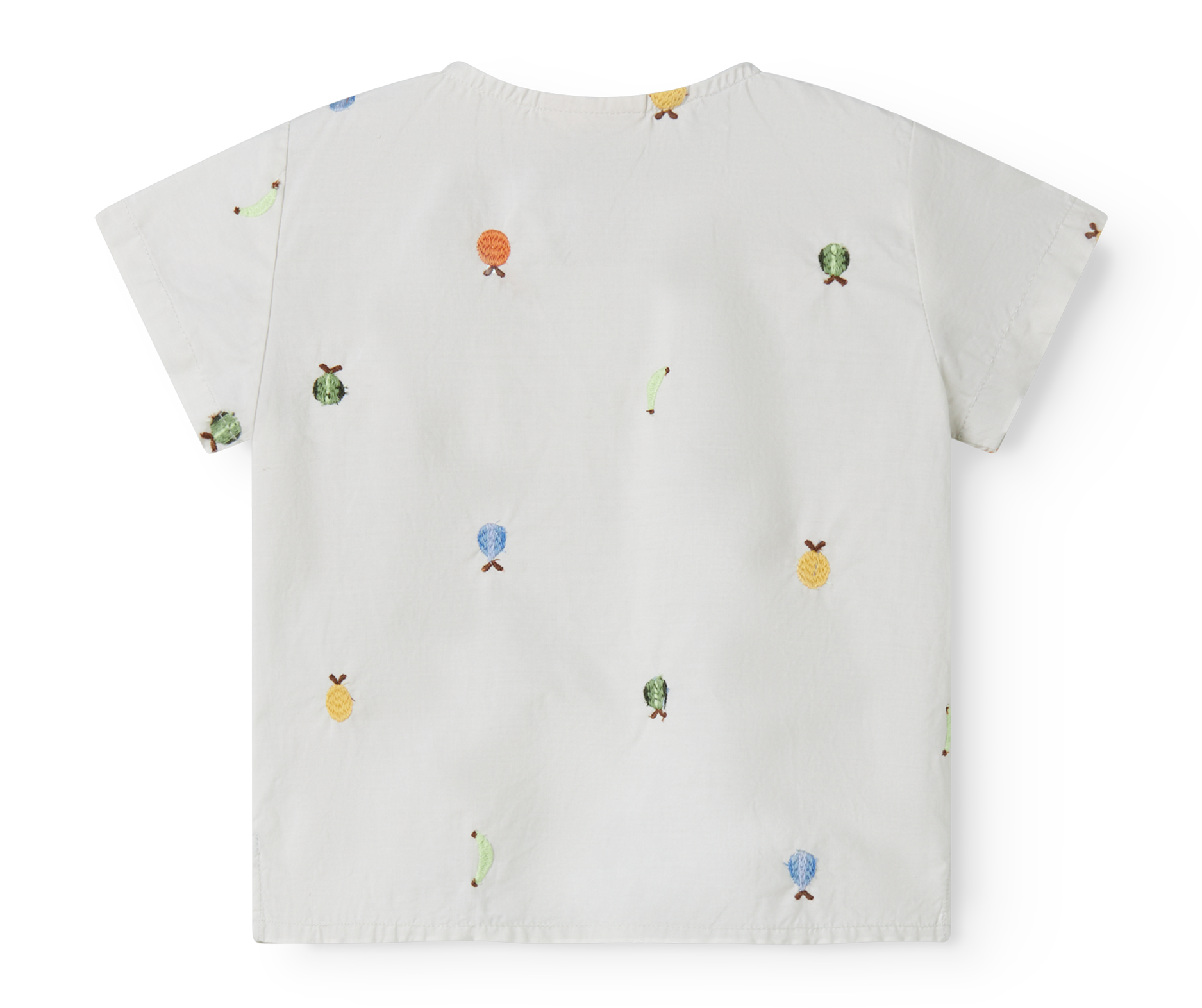 De Tero blouse van MarMar Copenhagen is een verfijnde en comfortabele keuze voor de allerkleinsten. Deze charmante top in de kleur Fruit Emb is uitgevoerd in een zachte, lichte tint en afgewerkt met subtiele, kleurrijke fruitborduursels die speels verdeeld zijn over de stof. Het ontwerp straalt eenvoud en Scandinavische elegantie uit, precies waar MarMar Copenhagen om bekendstaat.