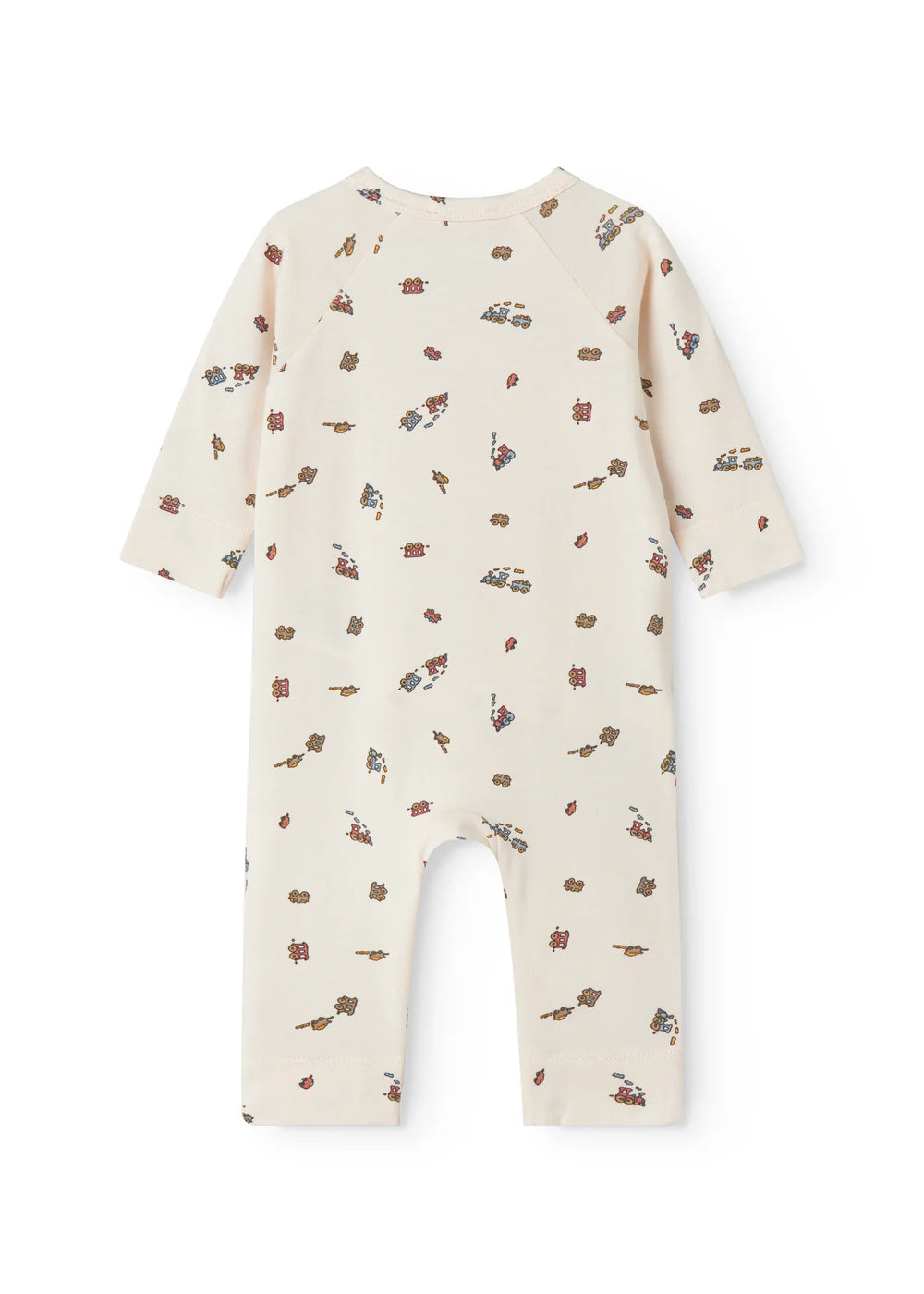 De all-over Trains-print geeft het boxpak een vrolijke en speelse uitstraling. De print is subtiel en harmonieus vormgegeven, waardoor het boxpak makkelijk te combineren blijft met andere babyitems zoals mutsjes, vestjes of jasjes.