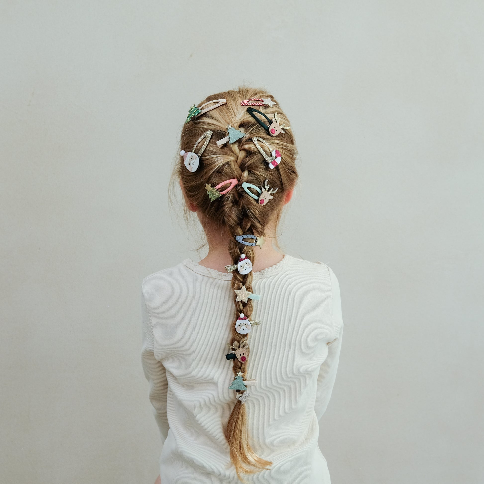 Deze clips zijn niet alleen praktisch, maar ook een stijlvol accessoire dat elke haarstijl compleet maakt. Of het nu gaat om een kerstfeest, een winterwandeling of gewoon om de kerstsfeer te omarmen, de Santa & Christmas Tree Clic Clacs voegen een vleugje magie toe aan de look van je kind.