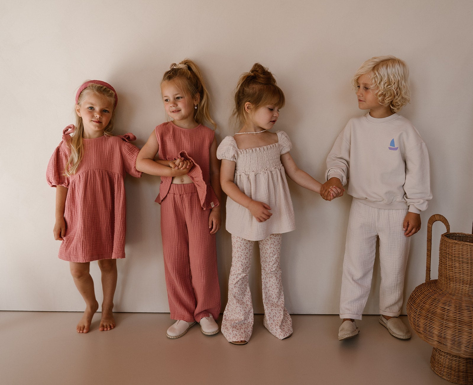 Navy Natural staat voor minimalistische kinderfashion met zachte kleuren en comfortabele materialen. Tijdloze items die makkelijk te combineren zijn en seizoen na seizoen gedragen kunnen worden.