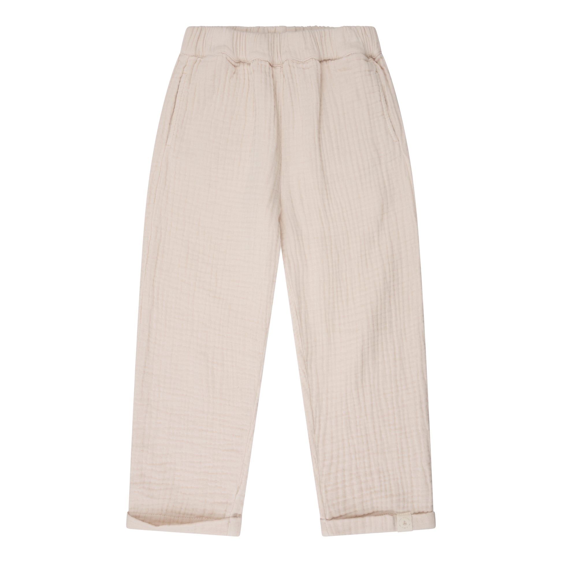 De subtiele structuur van mousseline geeft de broek een speelse, natuurlijke look. Geen stijve stof, maar een lichte kwaliteit die prettig aanvoelt op de huid.