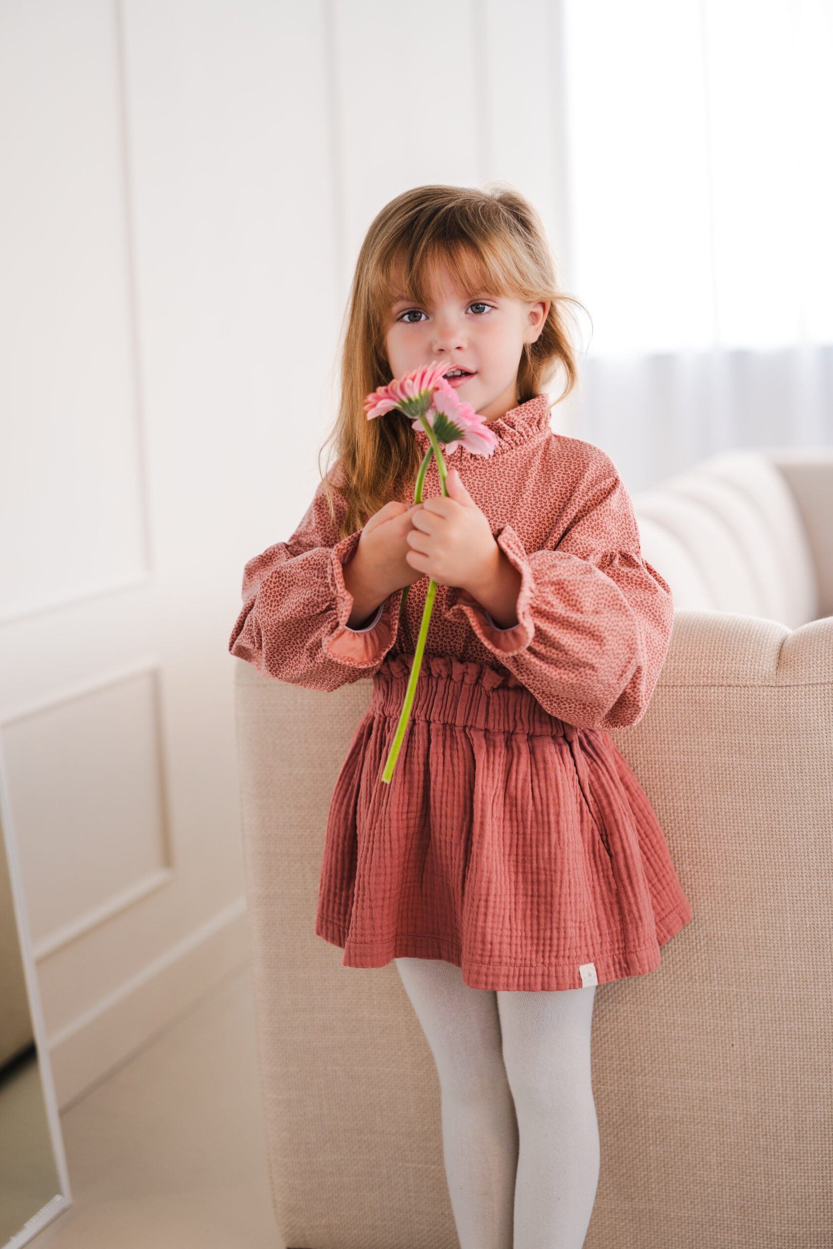 Deze blouse combineert stijl met comfort, waardoor het een veelzijdig kledingstuk is dat gemakkelijk te combineren is met verschillende bottoms. Of het nu gaat om een dag op school, een speeldag in het park of een casual uitje, de Tilda Blouse Brick Leopard is een must-have in de kledingkast van je kind.