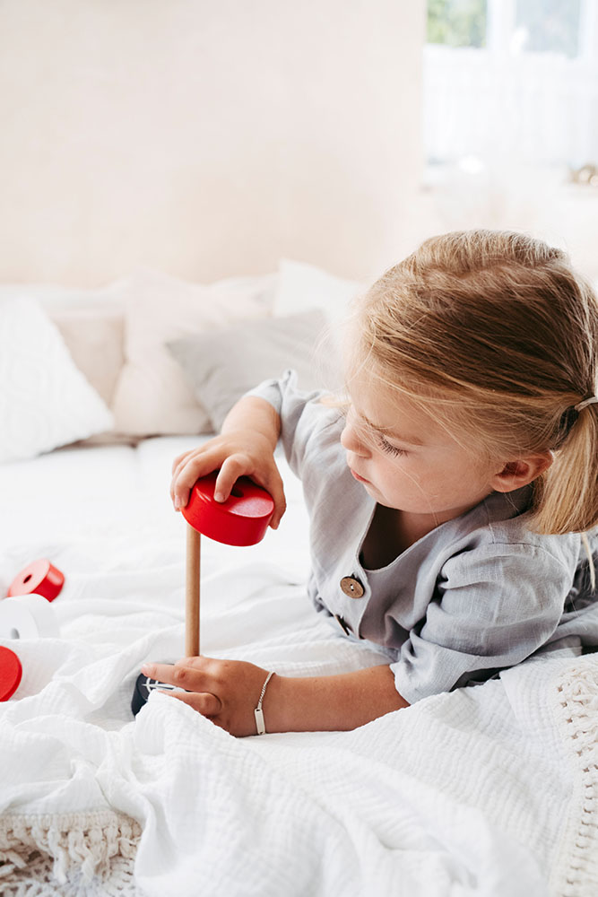 Dit motorische klassieker stimuleert de fijne motoriek, hand-oogcoördinatie en het begrip van kleuren en maten. Het ontwerp met een typisch nautisch uiterlijk maakt het niet alleen leuk om mee te spelen, maar ook een decoratief element in de kinderkamer.